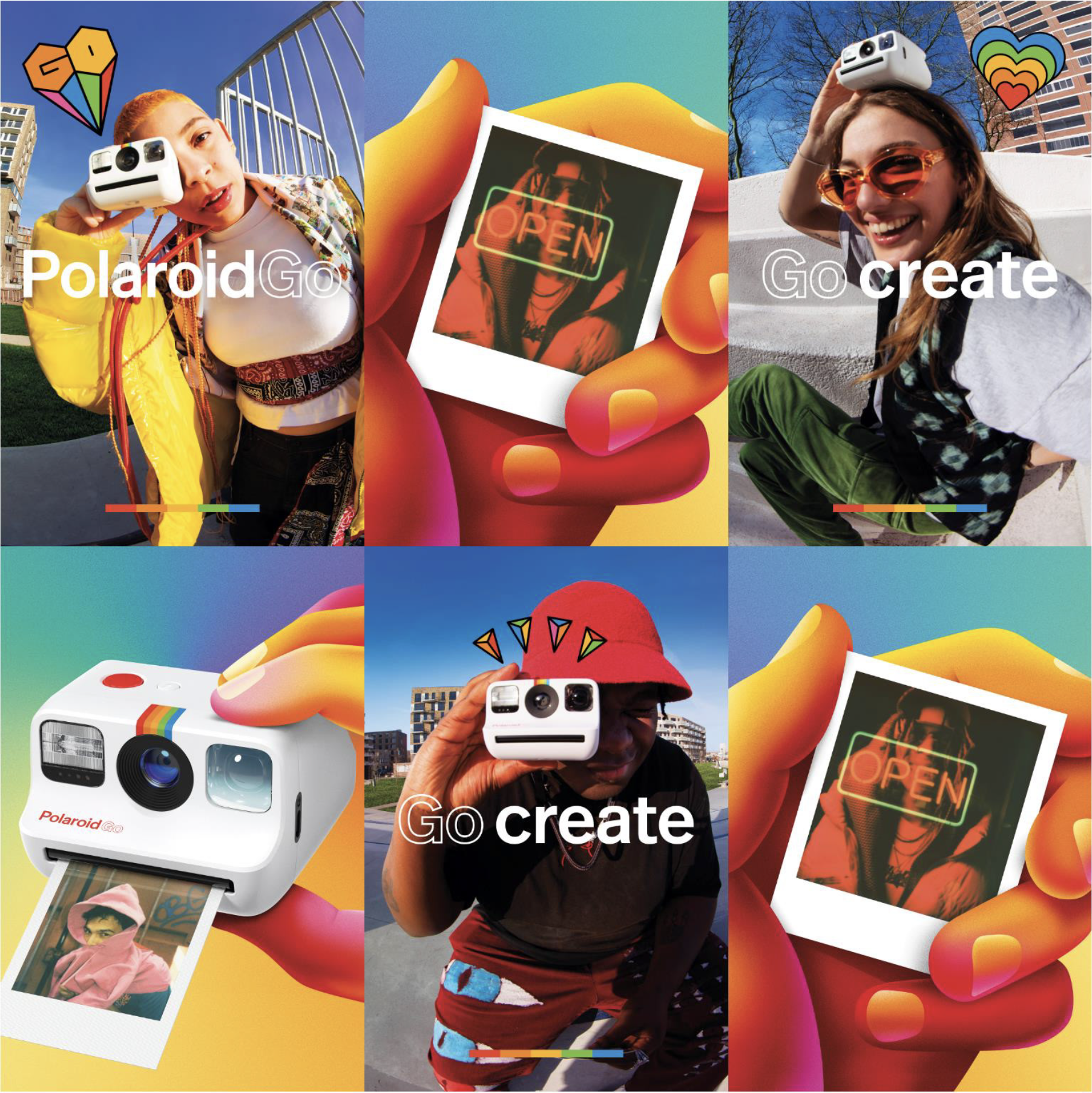 Repositioning Polaroid as a creative collaborator through the launch of a new format, the PolaroidGo. With the product's visual identity and the Go Create campaign platform, we evolve the brand's tone and visual language to something more modern and dynamic, designed to speak to a new generation.